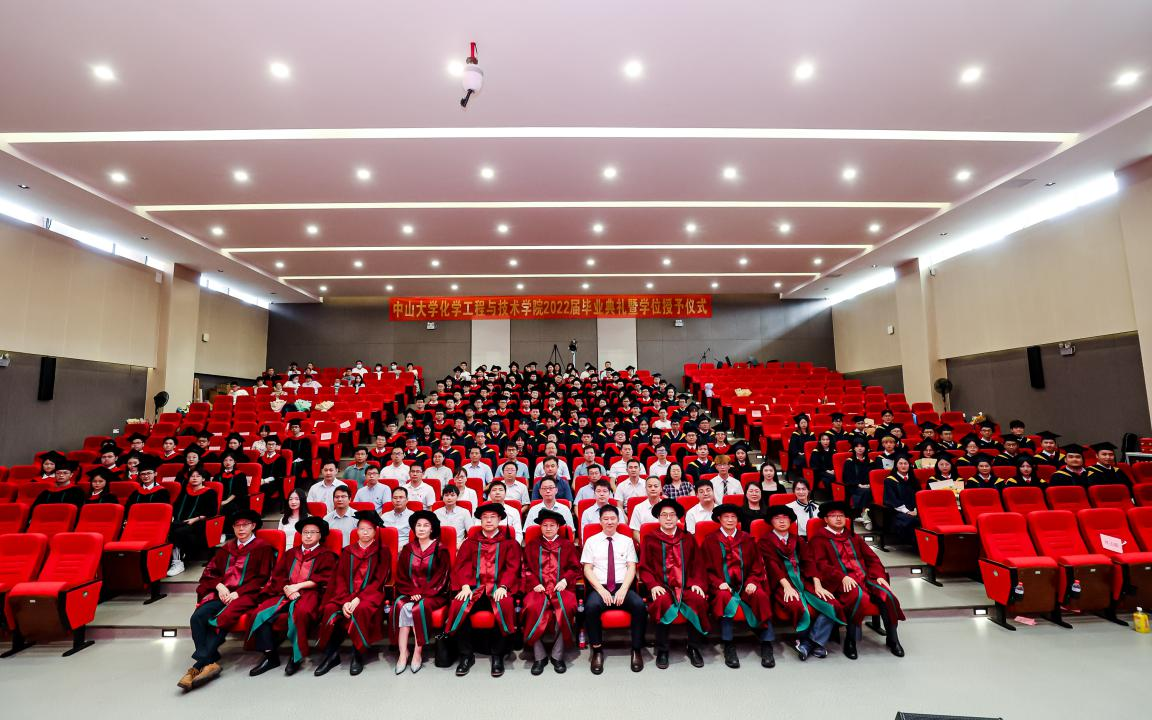 6月25日下午,化学工程与技术学院2022届毕业典礼暨2022年学位授予仪式在珠海校区隆重举行。学院院长欧阳钢锋教授、副院长薛铭教授、副院长孟国哲教授、李伟华教授、万一千教授、陈振兴教授、刘法谦教授、杨涛教授、王毅教授、芮泽宝教授等10位教授作为主礼教授出席典礼,学院党委副书记万忠娟、院长助理陈强副教授及刘威副教授等40多位教职工、130余名硕士、本科毕业生共同参加典礼,典礼由党委副书记万忠娟主持。