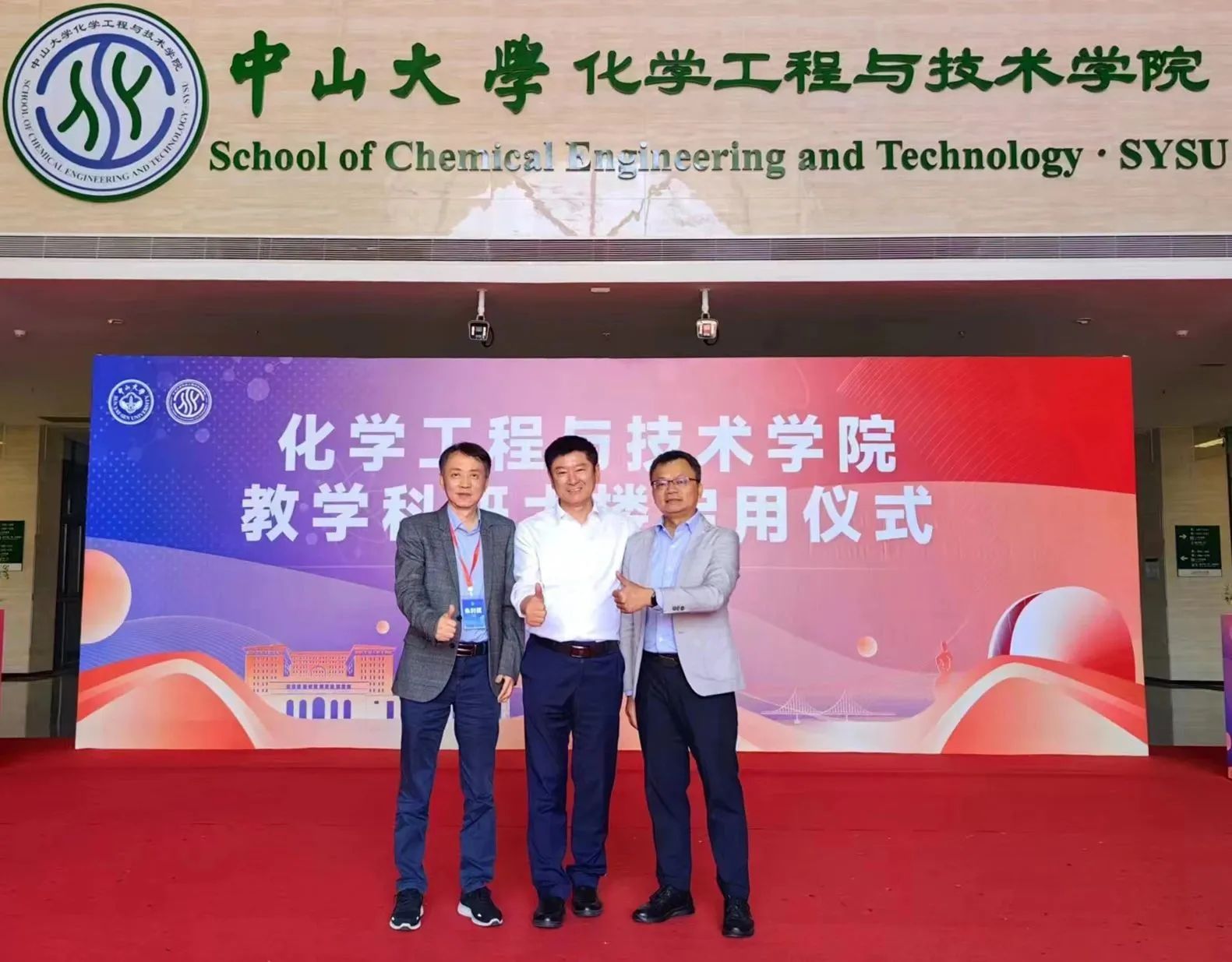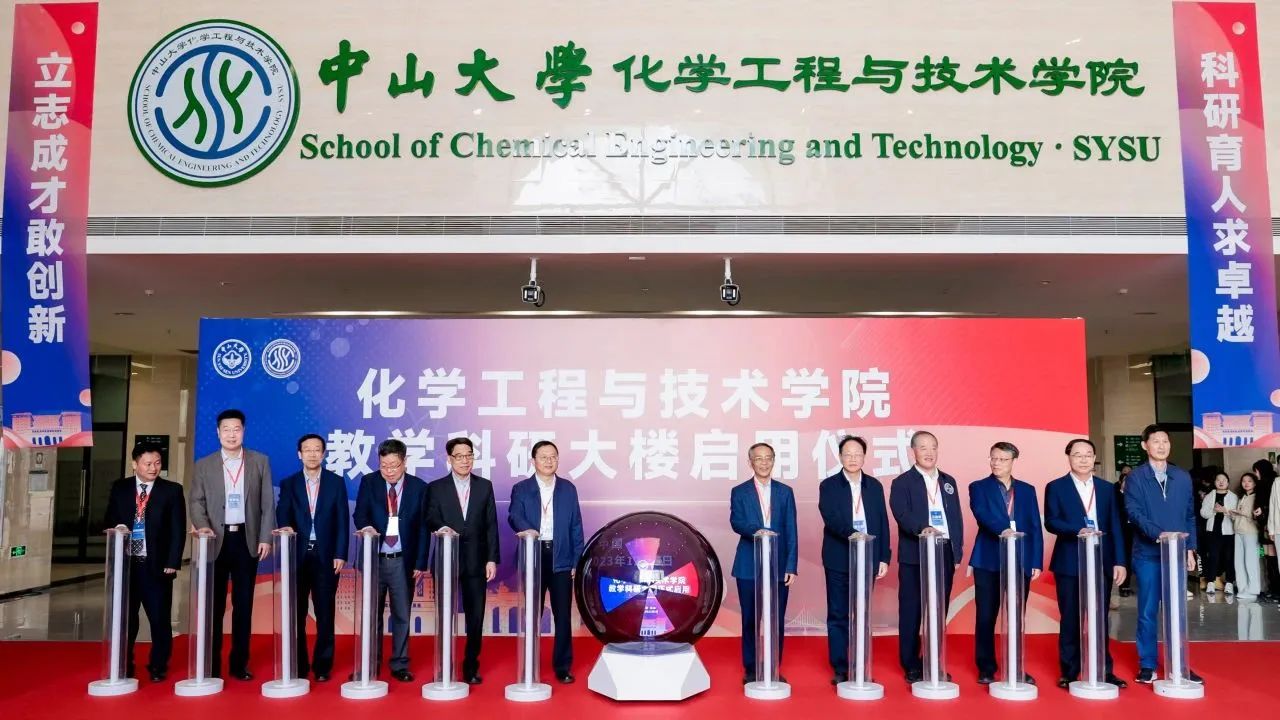 中山大学校长高松院士、中山大学绿色化学与分子工程研究院院长陈小明院士、中山大学药学院陈新滋院士、厦门大学化学化工学院郑兰荪院士、中国科学院大连化学物理研究所李灿院士、中国科学院生态环境研究中心江桂斌院士、中国科学院化学研究所赵进才院士、中山大学工学部主任郭烈锦院士、国家纳米科学中心赵宇亮院士、军事科学院防化研究院肖军华院长、珠海校区管委会漆小平主任、化学工程与技术学院院长欧阳钢锋教授,共同点亮象征启用的启动柱,标志着化学工程与技术学院教学科研大楼正式投入使用,开启了学院发展新征程。