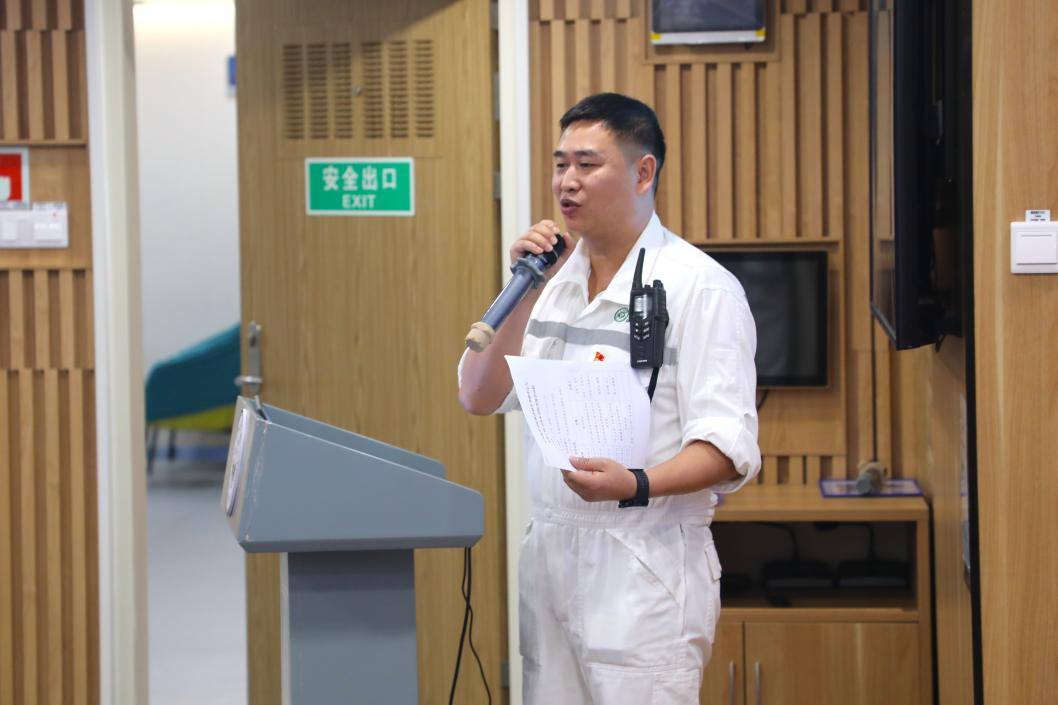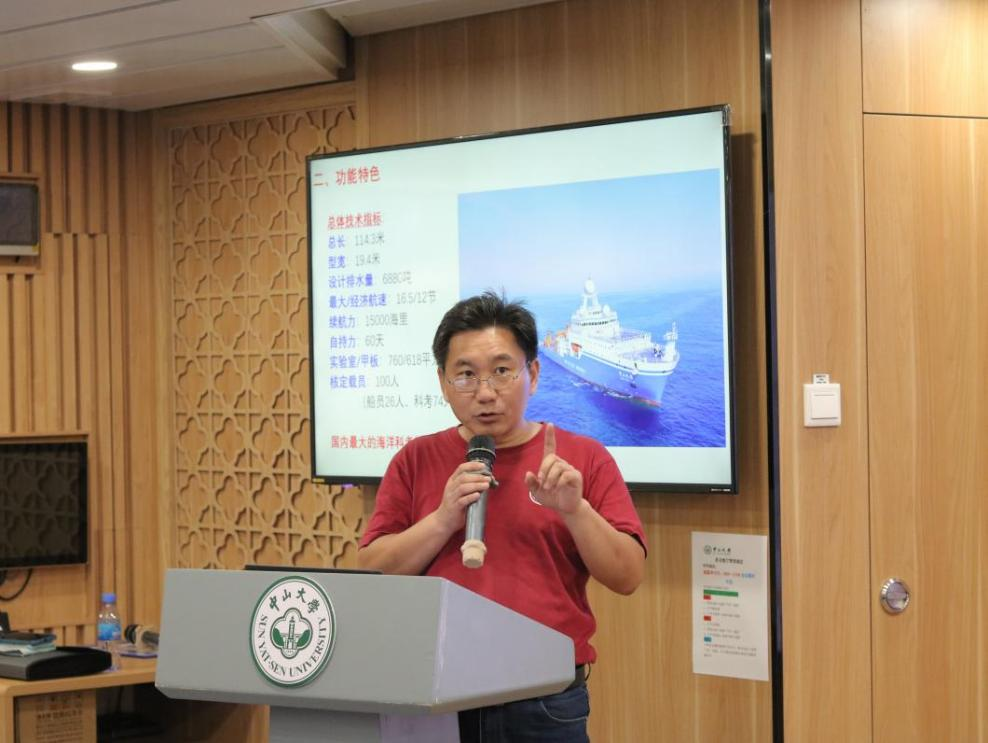 “中山大学”号海洋综合科考实习船金德飞船长主持本次联合党建交流活动,代表海洋科学考察中心党支部欢迎化学工程与技术学院师生党员前来交流。