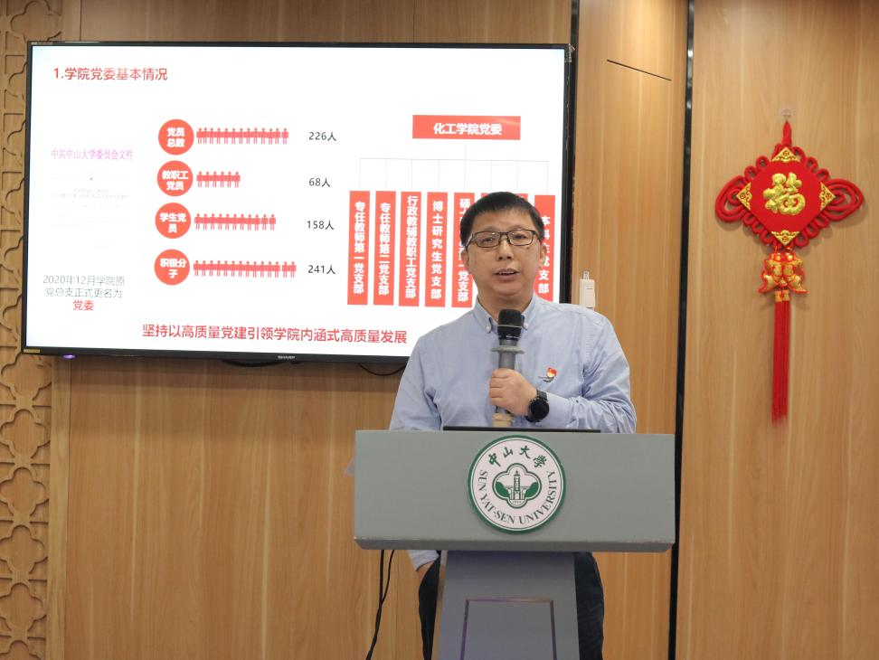 海洋科学考察中心党支部副书记叶玮茵老师介绍了支部筑牢思想根基、积极开展党建共建、促进学科交叉、深入推进一线临时党支部建设,积极探索“党建+深蓝”模式等方面基本情况。化工学院专任教师第一党支部书记周贤太教授介绍了党建引领学院发展的有关情况,重点介绍了学院学科历史、学科设置、师资队伍、科学研究、学科研究特色、研究方向、人才培养、平台建设等发展情况,强调了学院始终坚持以高质量党建引领学院内涵式高质量发展的基本思路。崔运璐总工介绍了“中山大学”号海洋综合科考实习船的建造历程、功能特色、功能定位、以及科考实践等基本情况。化工学院雷冰副教授结合学院特色,以船腐蚀与防护技术为主题,从数字化技术、深海腐蚀实验研究、先进海洋防护材料实验方面作了专题报告。随后,我院各支部党员同海洋科学考察中心党支部党员开展了交流。