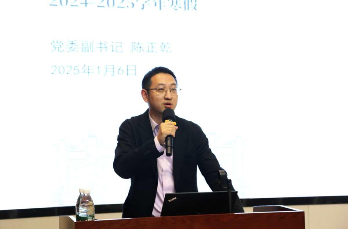 随后,陈正乾副书记通报了近期学生诚信考试教育、安全管理及寒假慰问有关工作安排,院长助理陈强教授通报了学院行政后勤和假期实验室安全管理工作。