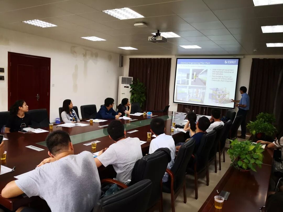 下午, Esat教授在杨皓程副教授的引导下参观了我院科研实验室。在104会议室向我院部分教师和行政人员进一步介绍了萨里大学学生交流情况,双方就共同关心的合作交流问题展开了讨论。