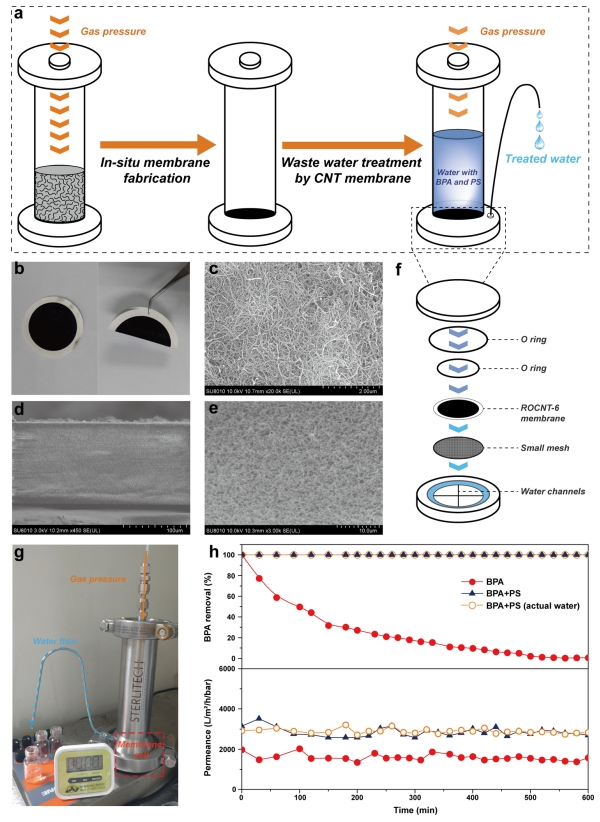 通过深入系统的研究发现碳纳米管上缺陷位为催化反应的活性位点而缺陷位上未配对自旋电子对催化活性则起着关键作用同时通过理论计算发现该体系的氧化电势可以通过在碳纳米管上构筑适当类型的缺陷来实现有效调控此外还利用缺陷态碳纳米管原位制备了滤水膜实现了真实水体低浓度污染物的连续快速去除使得该体系成为了一种理想的水处理系统。